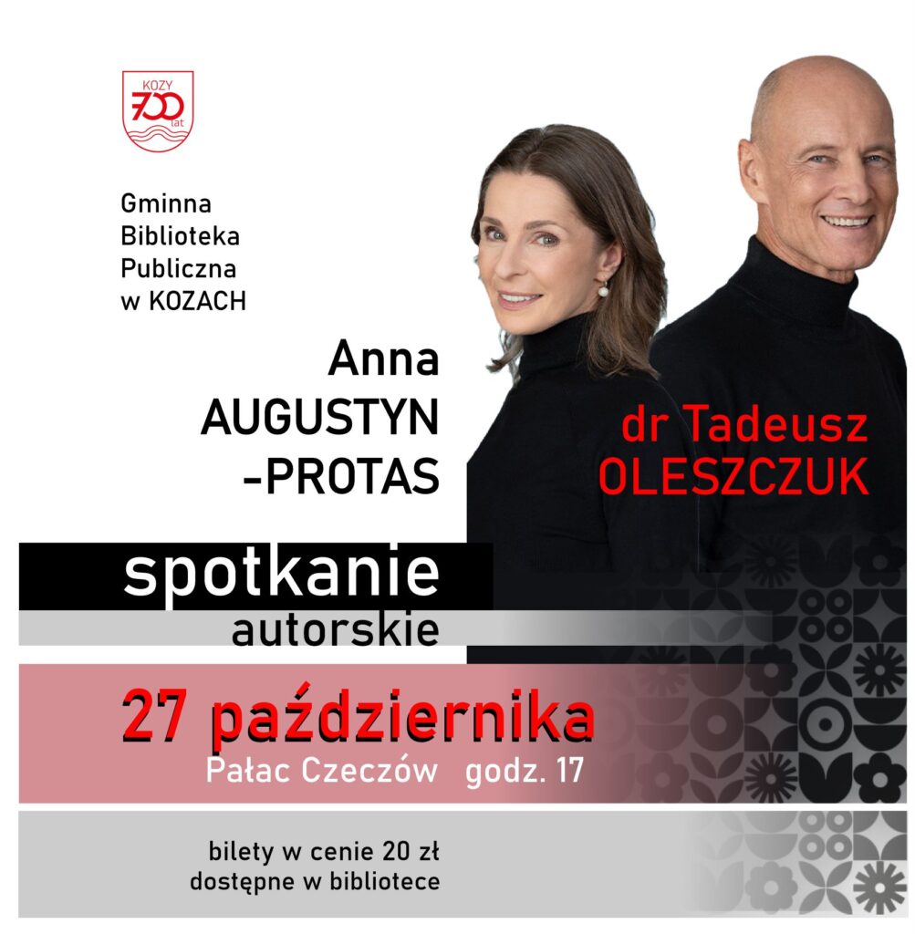 W czasach, kiedy nasze zdrowie oraz jego prawidłowe funkcjonowanie staje się dla wielu z nas priorytetem, a literatura poradnicza zyskuje na coraz większym znaczeniu uznaliśmy bowiem, że to najwyższy czas, by zaprosić do naszej biblioteki nie tylko autorów książek ,ale również wybitnych specjalistów w swojej dziedzinie. 27 października o godzinie 17 w Pałacu Czeczów odbędzie się spotkanie z Anną Augustyn Protas ( dziennikarką i współautorką książek poświęconych zdrowiu) oraz Tadeuszem Oleszczukiem( doktorem nauk medycznych, ginekologiem, położnikiem ,a przede wszystkim holistą). Są oni współtwórcami dwóch książek – „O menopauzie. Czego ginekolog ci nie powie”i „Czego nie wie dziewczyna, a ginekolog jej nie powie” oraz już niebawem kolejnego poradnika. Bilety na spotkanie będą do nabycia w bibliotece w cenie 20 zł. Ilość miejsc jest ograniczona. Decyduje kolejność zgłoszeń. Serdecznie zapraszamy.