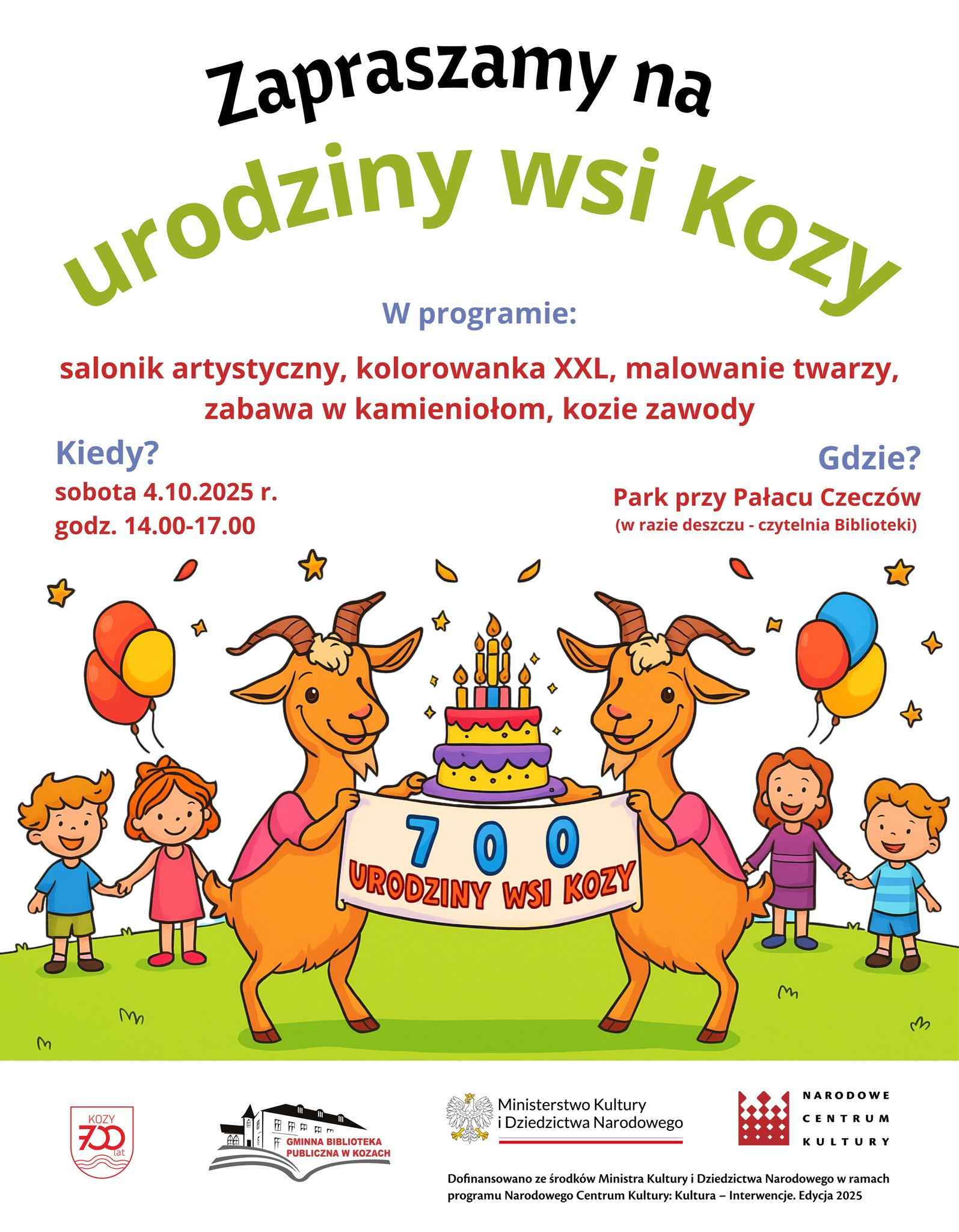 Wydarzenie jest częścią zadania „Siedem wieków wsi Kozy” dofinansowanego ze środków Ministra Kultury i Dziedzictwa Narodowego w ramach programu Narodowego Centrum Kultury: Kultura – Interwencje. Edycja 2025.